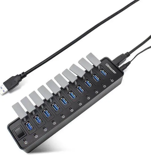 10 ports can simultaneous reading of multiple devices, easy to drive large power peripherals. Fashionable design, stylish appearance, a decoration of the desktop.10 ports large power capacity, high speed, sufficient power supply, more stable with USB 3.0 superspeed hub.Support multiple devices work at the same time.It has holes design on its back, easy to hang it on the wall and save your space.Each USB interface has a separate dust cover to protect the port from dust.Support quiy charge for your mole phone and other services.Switch power ON/OFF design. Plug and play and easy to use.Support external power supply mode and line power supply mode. External power supply can drive large capacity hard disks.Power adapter supports over-current protection and over-voltage protection.Lightweight, mini design and portable, convenient to carry. Suitable for home, travel and office.Specifications:Brand: Color: BlackMaterial: PlasticInterface: USB3.0Transfer speed: USB 3.0 5GbpsPower support:12V/3AIndicator: Blue LED IndicatorCompatible with Windows 2003/XP/Vista/Win7/Win8/Win10/Linux/MAC10.3 and above.Plug: USItem Size: Approx. 21.5cm * 5.1cm * 3.3cm / 8.46 * 2 * 1.29 inchItem Weight: Approx. 189g / 6.66ozPackage List:1 * HUB1 * USB3.0 Cable1 * Power Adapter(US)Plug Type:US Plug,it applies to Canada, India, Japan, Mexico, Thailand, the United States, the Philippines and so on.Only the above package content, other products are not included.Note: Light shooting and different displays may cause the color of the item in the picture a little different from the real thing. The measurement allowed error is +/- 1-3cm.