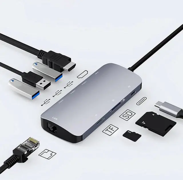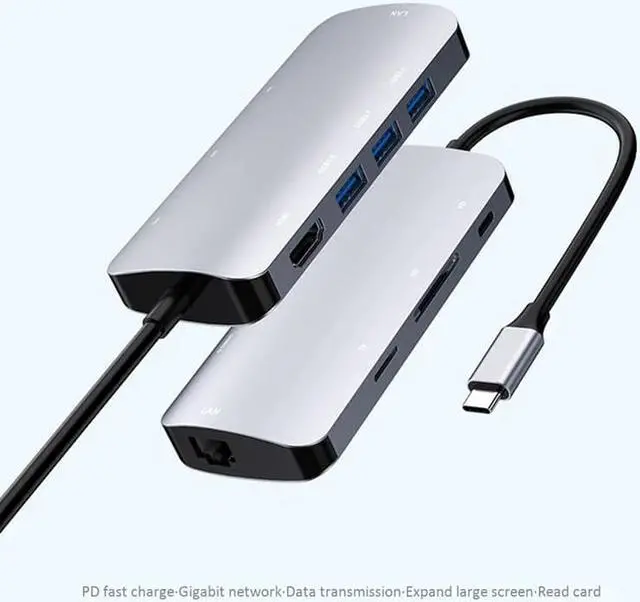 Capality Expansion: USB C Hub comes with 3* USB 3.0 ports, 4k video output, RJ 45 Gigat Ethernet port, SD/TF card reader slots, and 100W Power delivery port, meets all the request of laptops.High Resolution USB C to Adapter: Supports 4K resolution video at 30Hz and 1080p at 60Hz; you can duplicate or extend your sn for multitasking, viewing spreadsheet , editing documents, giving presentations, watching movies and playing video games.Mac-Style Design USB-C multiport adapter to internet: Thanks to the included Ethernet port, you can instantly access into a stable, reliable web at 1 Gbps speed. Additionally, the 100W PD charging port allows you to charge your laptop at the same timeConvenient USB-C to card reader for USB-C//Thunderbolt 3 devices to access files from SD/TF card reader, perfect for photographer or designer, etc.Never loose your internet connection: With the included Ethernet port a stable, reliable web access of up to 1 spaces is grantedcolour: silverMaterial: aluminum alloysize: 17.8x9.6x2.5cmPackage Contents: 1 * AdapterOnly the above package content, other products are not included.Note: Light shooting and different displays may cause the color of the item in the picture a little different from the real thing. The measurement allowed error is +/- 1-3cm.