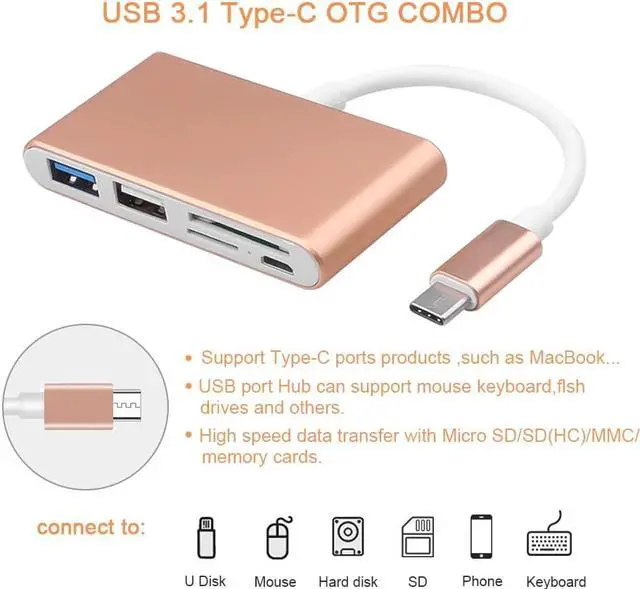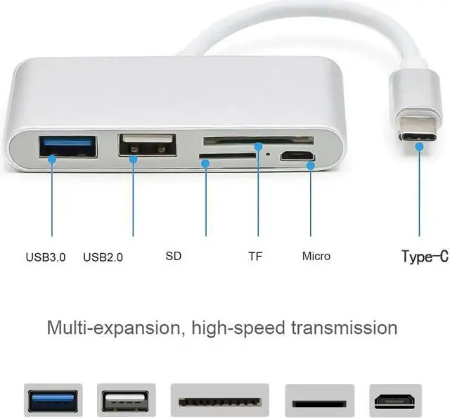 Interface: 1 x USB 3.0 port, 1 x USB 2.0 port, 1 x USB Type-C port, 1 x card slot, TF card slot (Please Note: This Hub can only read a TF card or a card at one time)
