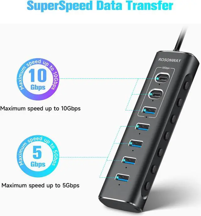 USB 3.2 hub with overvoltage and overcurrent protection, keeps your devices and data safe.