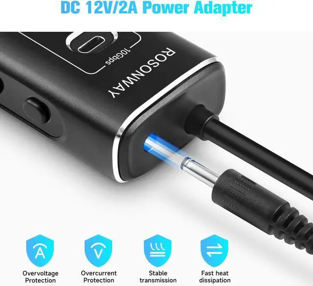 Powered USB Hub with a 24W(12V/2A) AC power adapter to provide sufficient power.