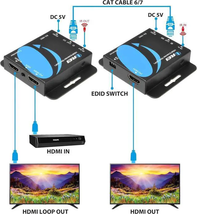 INCLUDES/WARRANTY - This bundle includes 1x EX-165+ ( Transmitter & Receiver), 1x Windband IR Tx cable, 1x Windband IR Rx cable, 1x 5V1A DC Power Supply Adaptor, 1x Product Manual, 2x HDMI Cables. If you have any questions regarding our extenders please feel free to contact us through support. 1 Year OREI Manufacturer's Warranty