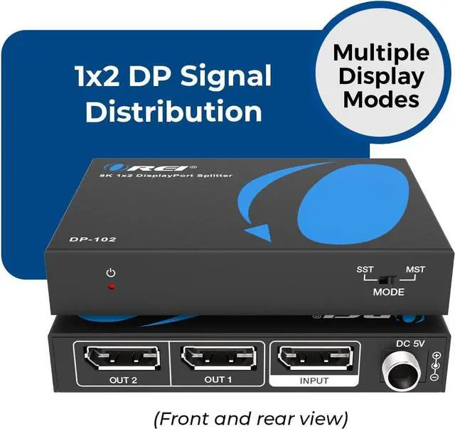 DisplayPort Splitter 1 In 2 Out: Connect one DisplayPort source device to two DisplayPort monitors simultaneously. Supports Extended Mode (Windows Only) and Mirror Mode (AAA / ABB / ABC) to meet your dual-screen or multi-screen display needs. A power adapter is included and must be connected for proper operation. Please note: this splitter only works from one DP source to two DP displays (bi-directional use is not supported). DP cables are not includedplease use your own certified DisplayPort cables for connection.