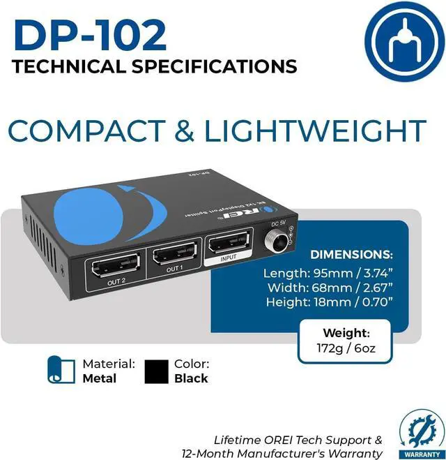 Wide Compatibility: Works with Windows, Vista, XP, Linux, and Unix systems, and supports input devices such as PCs and laptops. Ideal for multimedia teaching, conference rooms, offices, and gaming setups. The splitter does not include a fixed input cable, allowing you to connect different lengths of DisplayPort cables as needed for flexible installation. (For best performance, use DP 1.4-compliant cables no longer than 1.8m to avoid signal issues.)