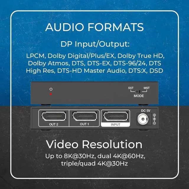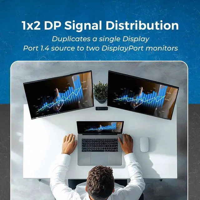 Supports High Resolution - Supports up to Single 8K @30hz or 4K@120hz, Dual 4K@60hz. Run dual monitors at 4K@60hz simultaneously, Delivers ultra-high-definition visuals for smooth, immersive viewing. To achieve the best results, ensure your source device, monitors, and DisplayPort 1.4-compliant cables all support 8K@30hzotherwise video quality may be affected.