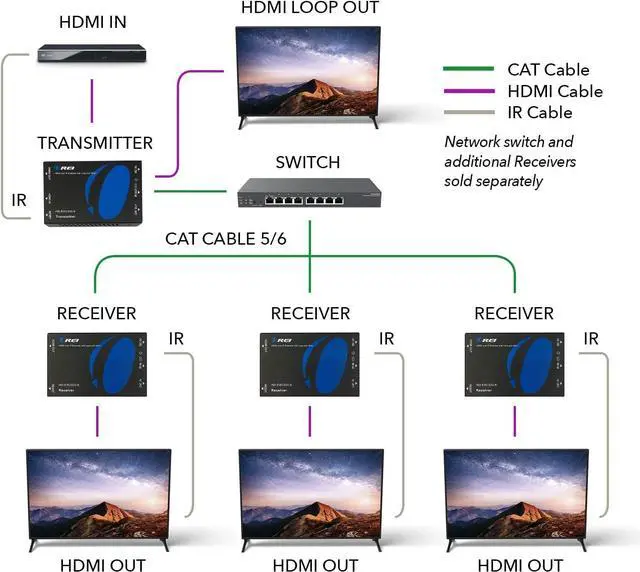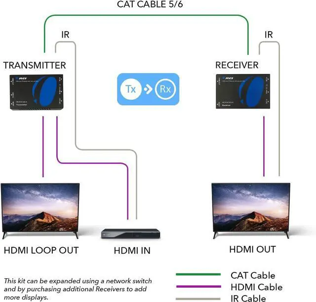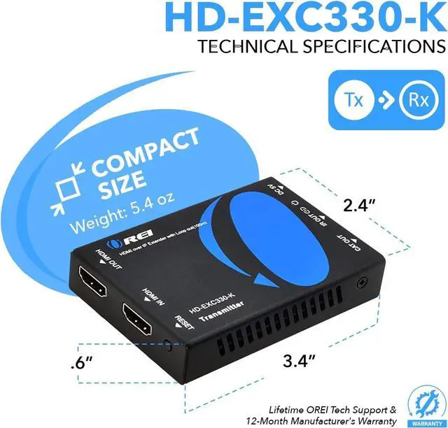 Hdmi loop out - Additional HDMI output on the transmitter end allows you to add a local display for monitoring