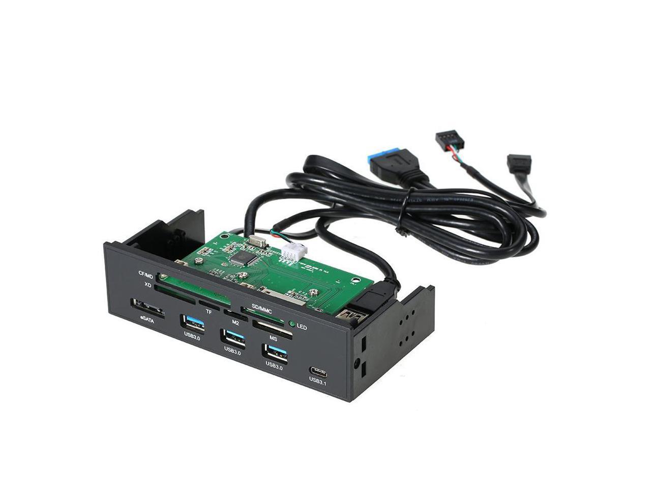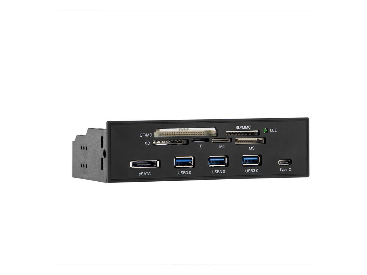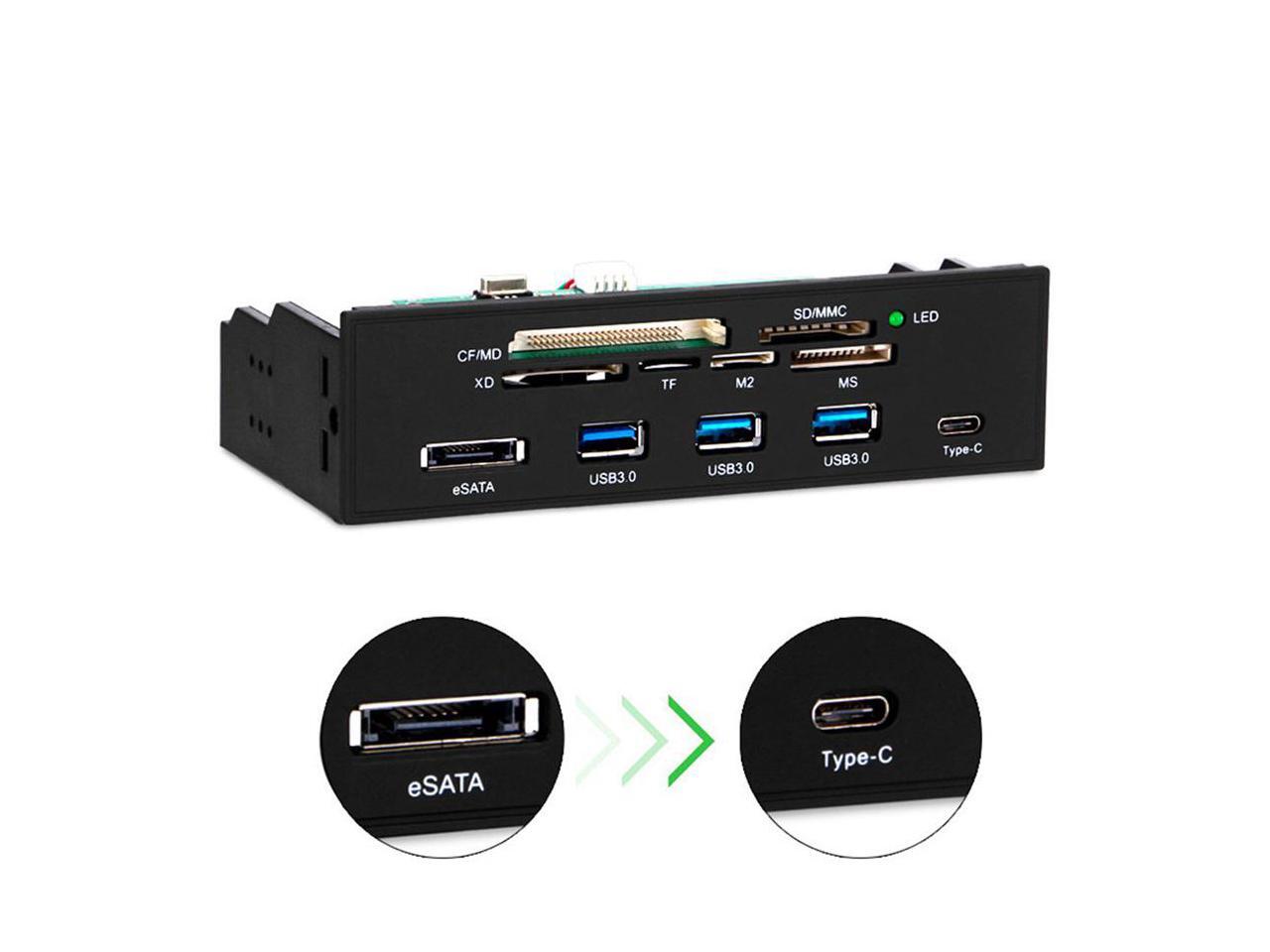 5.25" PC Computer Front panel USB 2.0 card reader with 3 ports USB3.0,Type-C, eSATA,MD,SD/MMC,XD,TF,M2,MS,64G CF Reader