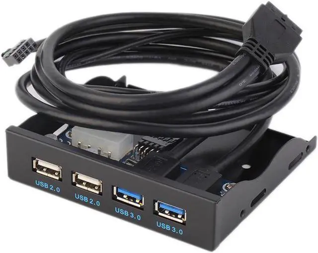 3.5 -inch Front Bay to 2-Port USB 3.0 & 2 Ports USB 2.0 Panel Hub turns any available 3.5 -inch computer case front bay into a 4-Port USB hub. Using only a single USB connection, this front panel hub adds four easily accessible USB ports to the front of your computer case through a 3.5 -inch bay, or through a 5.25 -inch bay using the optional Front Bay Bracket Adapter accessory. 4-Port desktop front panel expansion 3.0 '' 3.5 '' floppy bay allows 2 USB 2.0 and 2 USB 3.0 devices connection Enjoy super speed data transmit speed up to 5Gb/s and also universal design with both USB 2.0 / 3.0 port.