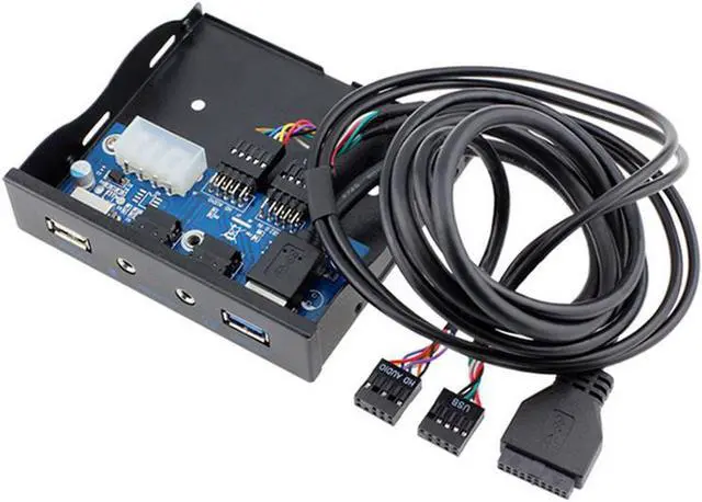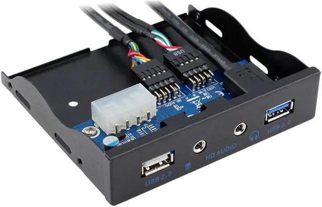 3.5 -inch Front Bay to 2-Port USB Panel Hub and 1 HD Audio Port/1 Microphone Port turns any available 3.5 -inch computer case front bay into 1 x USB 3.0 and 1 x USB 2.0 Ports. This front panel hub extend two easily accessible USB ports to the front of your computer case through a 3.5 -inch bay, or through a 5.25 -inch bay using the optional front bay bracket adapter accessory. Added USB 3.0 port is compliant with the USB 3.0 standard which supports up to 5Gbps of bandwidth and up to 900mA of power.