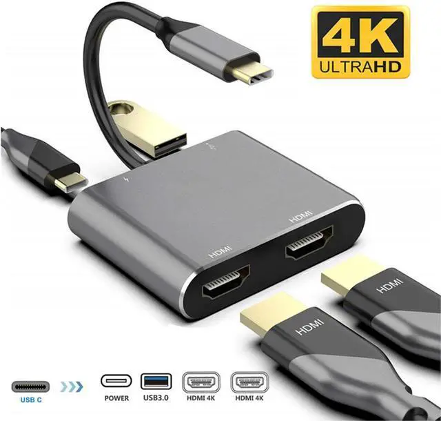 Type-c to dual-port HDMI support HDMI 4K30HZ simultaneous display (two screens display 4K at the same time), four