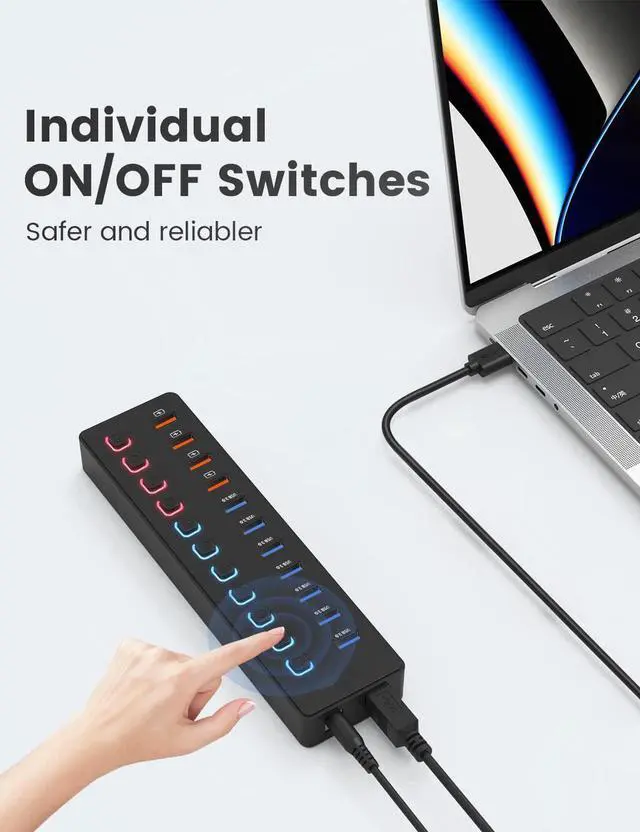 This 11 port powered usb hub 3.0 expands 7 data transfer ports and 4 smart charging ports, is specially designed for charging and data transmission, which can charge and transmit data faster.