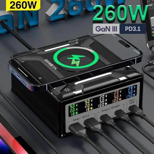 260W PD Charger USB-C PD 3.1 / PD 3.0 / PPS/ QC4+/ QC 3.0