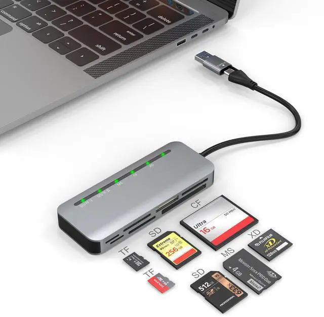 7-in-2 Memory Card Reader USB3.0 & USB C supports SD/SDXC/SDHC/Micro SD/CF/XD/MS/MMC cards