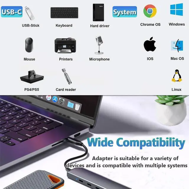 [Plug & Play]: No additional drivers or software are required. The USB C multiport adapter is plug and play for Windows 11/10/8.1/8/7/Vista/XP, macOS, Linux, iPadOS, iOS and Android