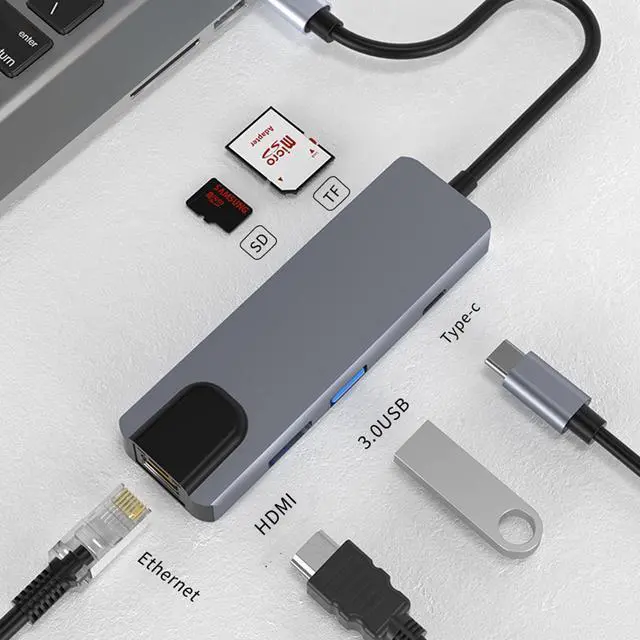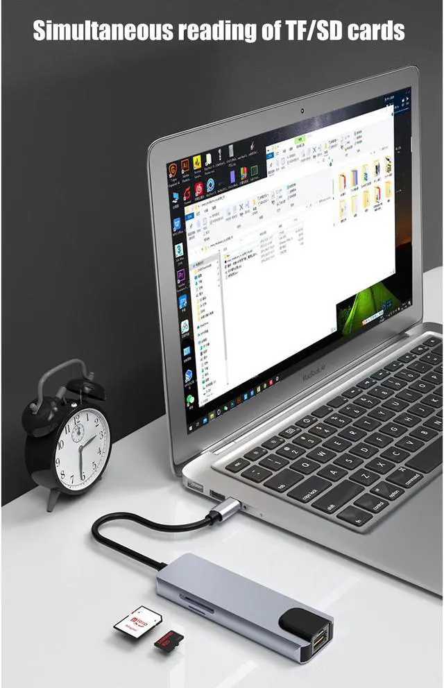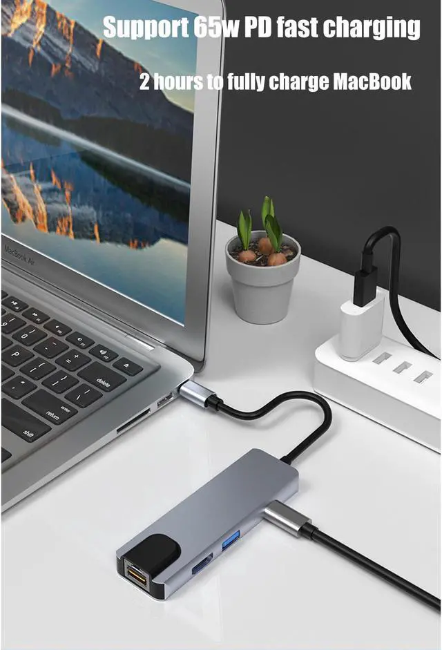 USB-C Hub: Update version of the 5-in-1 USB C Hub adapter, which turns a single USB-C port into 6 ports for data transfer, display expansion, internet connection, and charging