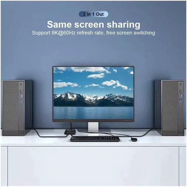 Ultra 8K Video Output, you can output max 8K@30Hz 4K@120Hz 1080P@165Hz via our USB-C Switch/Splitter to your USB-C Displays, The maximum resolution of your output depends on your Source device, monitor and cable used. When you use our switcher to realize the video function, we recommend that you do not use too long cables (The sum of the cables at both ends does not exceed 3 meters). Too long cables at both ends will cause the screen to flicker or the screen cannot be displayed