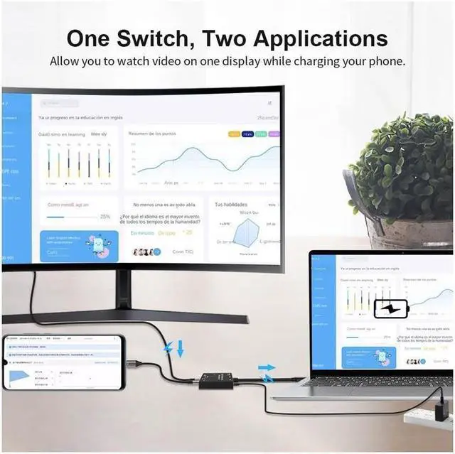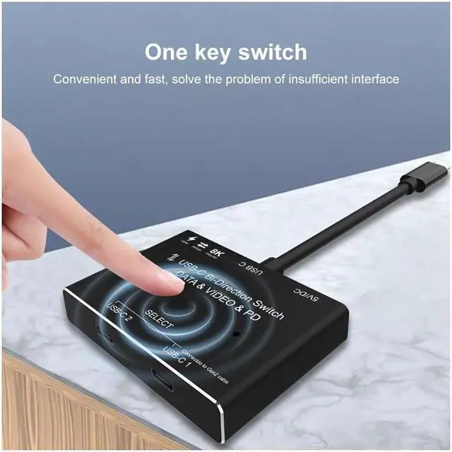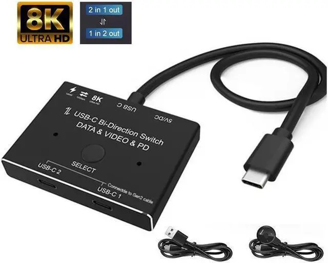 USB-C 8K Bi-Direction Video Transmissions&Data&Power Switch/Splitter: The USB-C switcher allow you to connect two USB-C sources to one USB-C display or connect one USB-C source to toggle between two displays, (Two displays CANNOT display simultaneously), both of your source and display's USB-C Port should support DP Alternate Mode for Video Transmitting. Ultra HD 8K Video Experience. Please use a standard USB-C Gen-2 cable to connect your signal source or monitor device.
