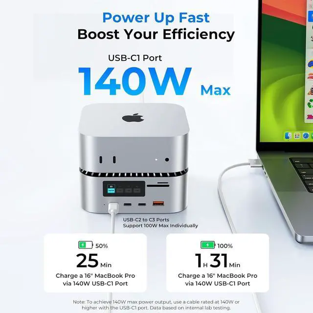 All-in-One Mac Mini M4 Dock & Charging StationThis Mac Mini M4 docking station seamlessly integrates a 165W GAN PD charge and 8TB SSD expansion hub. Transfer data, store files, and charge your devices simultaneouslyall seamlessly integrated with your Mac Mini M4 desktop environment.
