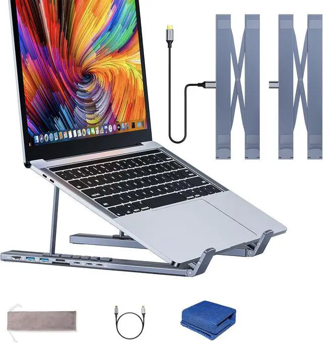 8 in 1 USB C Laptop Docking Station Stand - Total game-changer Say goodbye to tangled cables and a sore neck from long hours of work looking down at the computer, perfect for home offices, corporate desks and cafes.