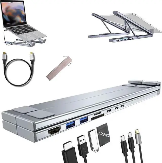 Miracle/Civilized 8-in-1 USB-C Laptop Stand, Upliftjoys Laptop Docking Station, with 4k HDMI, 2 USB 3.0, Pd 100w, Universal for Home Offices, Corporate Desks