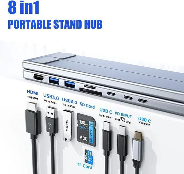 The civilizek 8-in-1 usb-c laptop stand unparalleled versatilitys with 8 port aluminum alloy laptop and stand hubs, featuring superior heat dissipation for enhanceds device performances.For individuals, professional, and students who require connectivitys and Efficient organization.