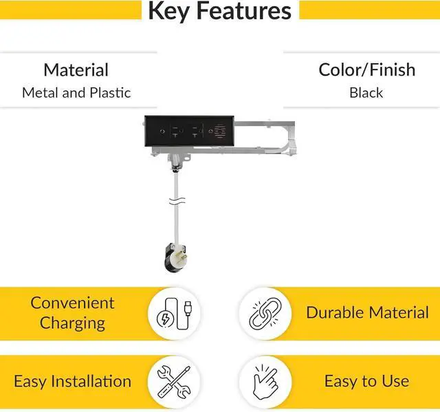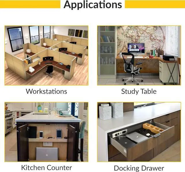 • Versatile Drawer Outlets: Offers a combination of AC outlets and USB ports for comprehensive power needs in any setting.