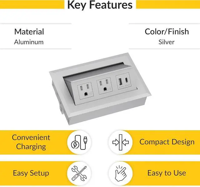 The Hide A Dock Power or Data Station is a sleek and functional solution designed for modern workspaces. Crafted from high-quality aluminum,it features a polished finish available in both silver and black,allowing it to blend seamlessly with any office decor. This pop-up station provides convenient access to power outlets and data connections,making it ideal for desks,conference tables,and collaborative work environments.