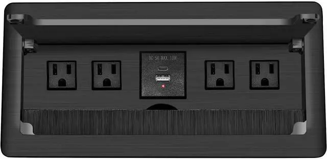 This ItemEmbedded mesa Power Outlet Box, Table Power Multimedia Connectivity Box for Conference Study Room Home with 4 AC Outlet,USB-C Port Fast Charge 18W Length 4.9FT Power Cable (Brushed Black)RecommendationsConference Table Power Brush Connectivity Box with 4 AC Power + 2 RJ45CAT6 + 2 Audio 3.5mm + 1 VGA + 1 HDMI + 2 USB Charger with 5.58ft Power Cord (Black) Brush Connectivity Box Conference Table Power Box with 3 Power Socket+ 1 USB-A and Type C Charger+1 CAT6+ 1 HDMI/USB-C Data(Black) (Flip up) Pop up Power Strip, Embedded countertop Pop Up Outlet, 6.5FT 16AWG Cable 4 AC Outlets max power1875w USB C PD 20W Fast Charging Used for Office, Conf