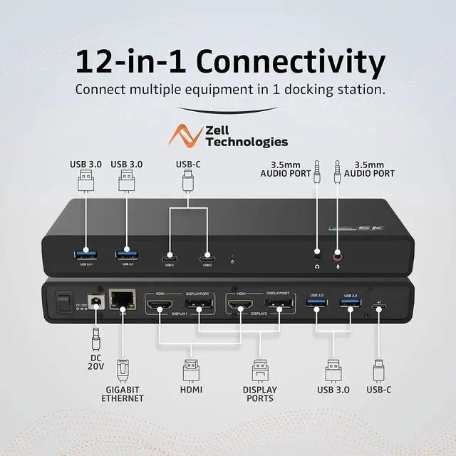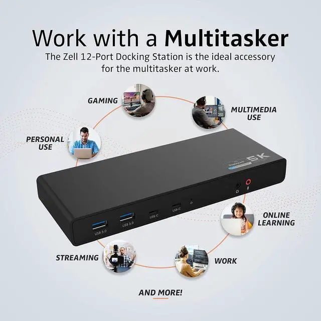 3.7 out of 5 starsZell Technologies USB-C Display Link 12 Port 65W Power Delivery Dual 4K HDMI Docking Station, Supports 5K (5120 x 2880@60Hz), for Thunderbolt 3 or USB-C laptops