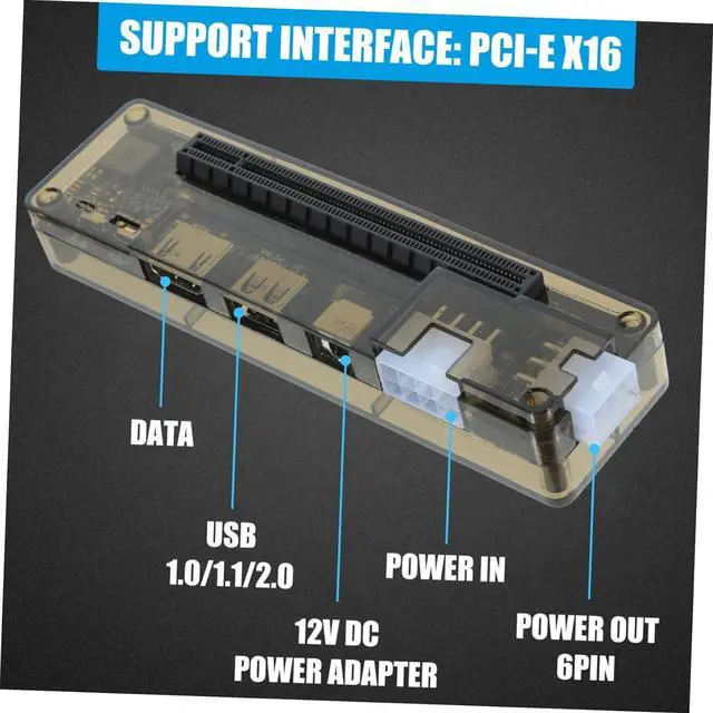 Power: Max 220W (8Pin interface) / Max 150W (DC interface) Graphics Card Adapter