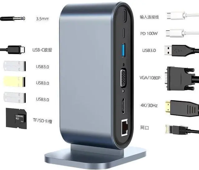 Multi-Interface Vertical Docking Station type-c12 in one Laptop USB