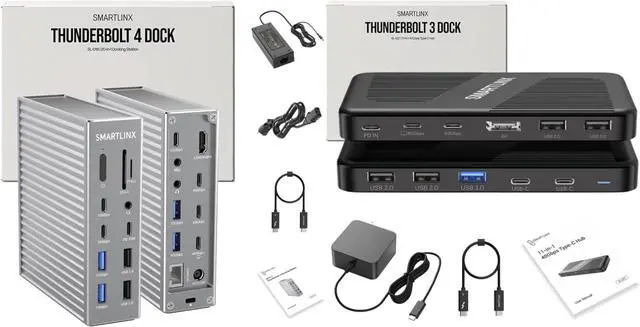 Transform your workstation with the Thunderbolt 4 & Thunderbolt 3 Docking Station Bundle, delivering high-speed connectivity, powerful charging, and ultra-high-resolution display support. The Thunderbolt 4 Dock features 20 ports, 40Gbps data transfer, 90W power delivery, and support for single 8K or dual 4K displays, making it an ideal hub for professionals and creatives. The Thunderbolt 3 Dock offers 11 ports, 100W pass-through charging, and dual 4K display support, ensuring seamless compatibility with Windows and Mac devices. Whether you're a power user or need a streamlined multi-device setup, this bundle delivers unmatched performance and efficiency.