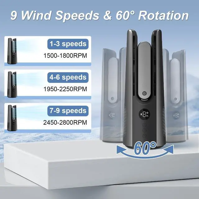 9 SPEED ADJUSTMENT: Our desktop fan offers 9 adjustable speed settings, from gentle breezes to a powerful 2800 RPM turbo boost for instant cooling. Easily adjust the wind speed you want with push-button controls. The precision-engineered speed settings ensure optimal airflow delivery, making it suitable for various activities, including focused work, lounging, and sleep