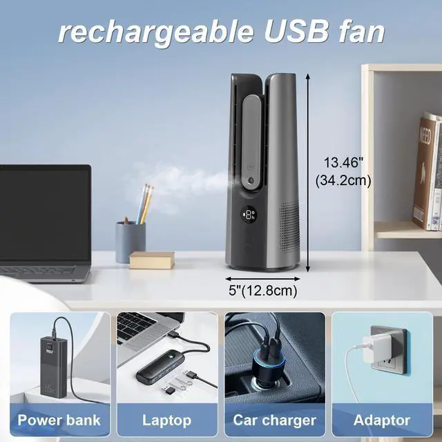 UNIVERSAL USB POWER COMPATIBILITY: With its versatile USB charging interface, the MEIIS mini fan offers unparalleled portability and convenience. Compatible with a wide range of power sources, including laptops, power banks, and USB wall adapters, the fan can be powered anywhere, anytime. The 5000mAh rechargeable battery provides extended operation, making it an ideal cooling solution for both indoor and outdoor applications, from remote workspaces to outdoor leisure activities