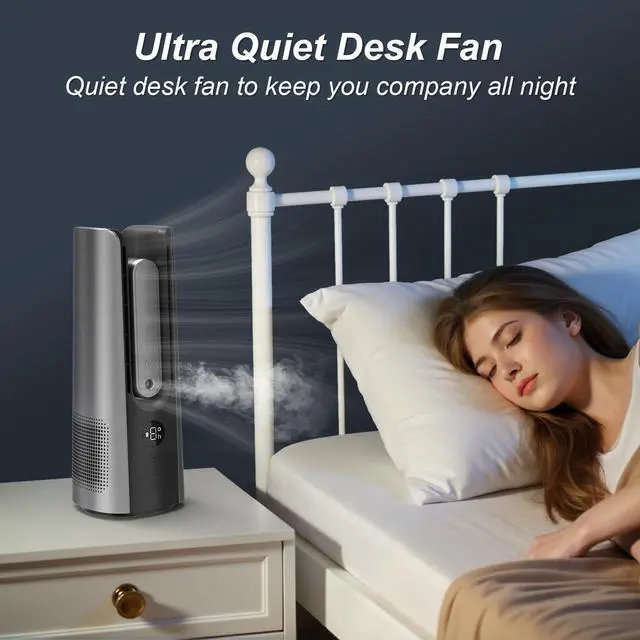 FUTURISTIC BLADELESS DESIGN: Compared to traditional fans, this bladeless desk fan combines cutting-edge bladeless technology with a high-efficiency 3-phase brushless motor, eliminates hazardous blades, creating a child-safe and pet-friendly airflow solution with its smooth, enclosed design and easy cleaning. Built to last 3X and delivers 30% more energy-efficient cooling than traditional fans while maintaining silent operation, enjoy ultra-durable performance and zero maintenance work or relaxation