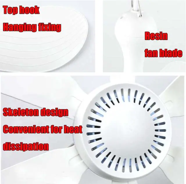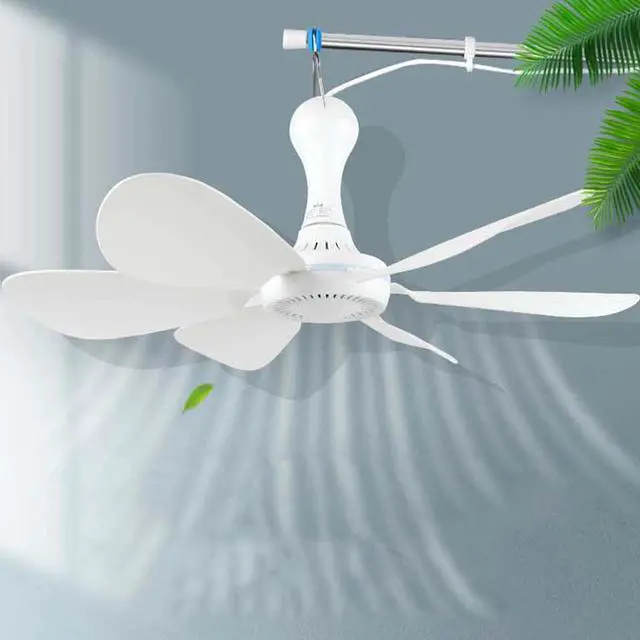 Outdoor Solar Ceiling Fan Camping Fan USB Speed Control Small Ceiling Fan Plug-in Resin Fan Blade Hollow Design with Hook Easy Disassembly Assembly White 5w/6w/10w
