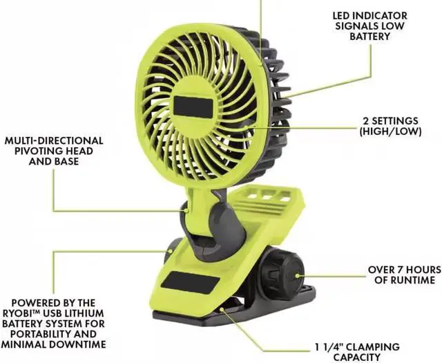 USB Lithium Clamp Fan Kit with USB Lithium 2.0 Ah Lithium Rechargeable Battery provides portable cooling solution whenever and wherever you need it.