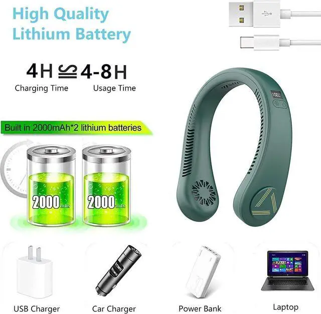 - Portable neck fan is easy to carry when travelling, hiking, climbing, camping, exercising, especially an ideal gift for your parents, friends who struggle with hot flushes.