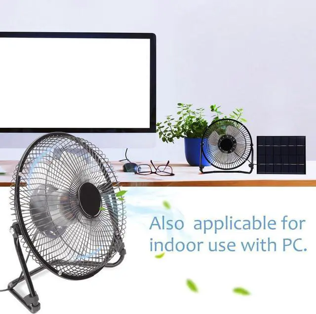 Application: Charger for power bank, MP3 or other electronic products It can only work in the sun if you do not power it through the USB port. The operating efficiency of fan will depend on the sunlight intensity while it plugged to the solar panel. With adjustable support stand, you can place it stably on the table and make this mini fan in a convenient angle Made from premium metal frame, the mini fan is very durable for long service time