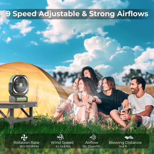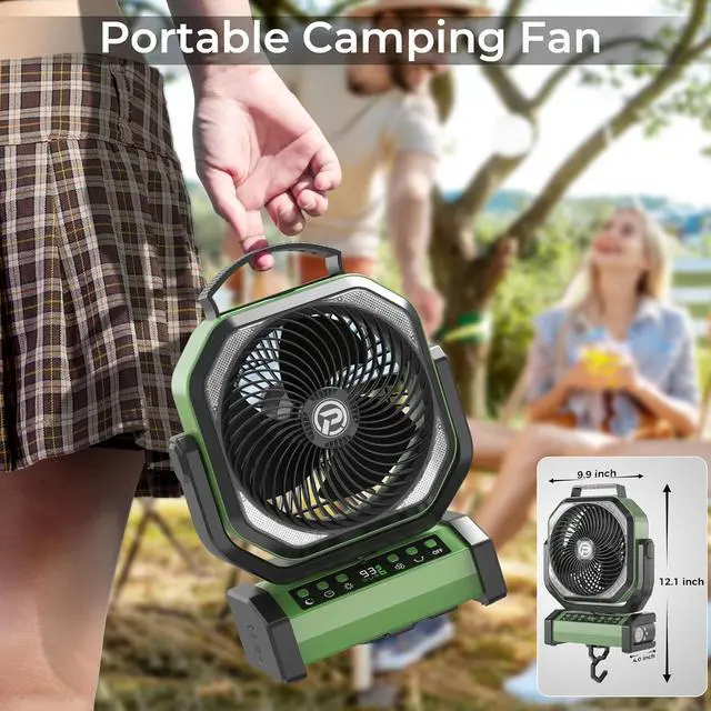 Portable and Sturdy: The 12-inch camping fan comes with a hidden handle for easy carrying and traveling. Featuring a sturdy construction for for anti-drop and anti-collision use, the robust base provides great stability to keep the tent fan firmly in place. Ideal for outdoor activities such as pavilions, yards, camping, hiking, picnics, fishing, and boating