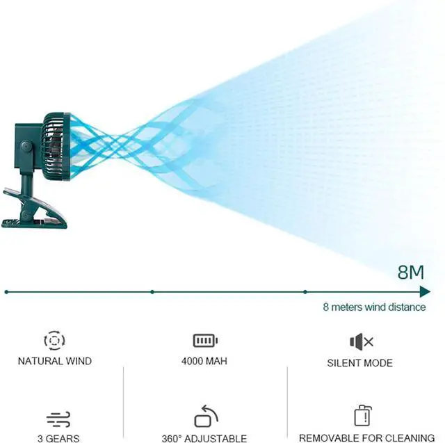2. Through the designed clip, the fan can be firmly fixed on the bed/desktop/other places.