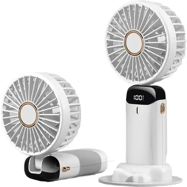 Handheld Fan Foldable Portable Neck Hanging 5 Speed USB Rechargeable Fan with Stand and Display Screen(N15-White)