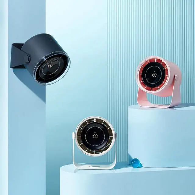 This fan features a digital display,and a 3600mAh rechargeable battery for extended use.