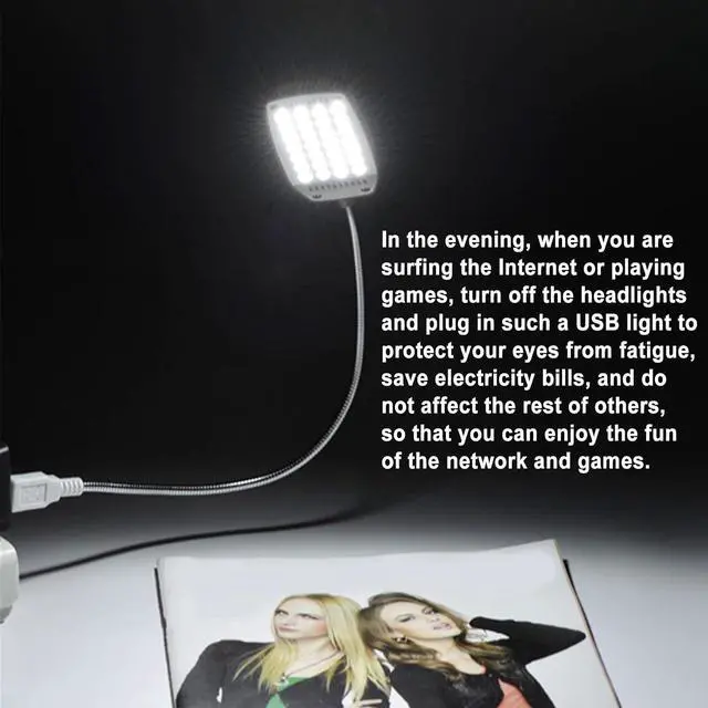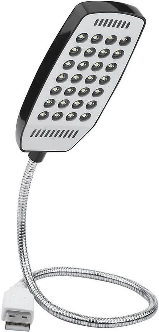 This item adopts 28 LED as light source , for long-lasting , eco friendly , low power consumption and energy saving . Flexible gooseneck design , you can arbitrarily adjust the lighting angle according to your need . Powered by a PC USB port , no batteries and other external power are needed . Plug into your PC USB port , it starts to bring you brightness right now , easy to use . Ideal for lighting your laptop in the darkness . An ideal companion for students , travelers , office workers .