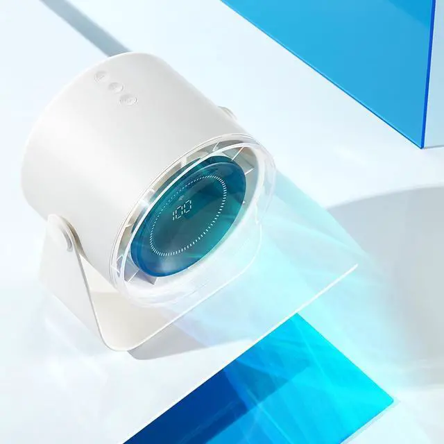 This fan features a digital display, and a 3600mAh rechargeable battery for extended use.