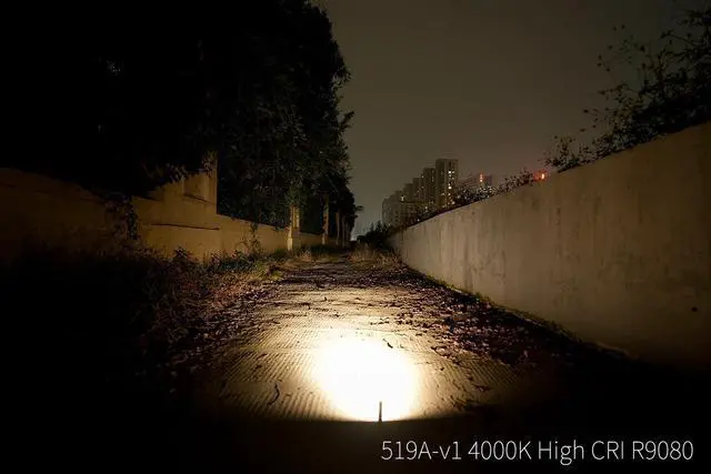 " Lighting Modes: LED Options: 6500K Cool White (560 lm for closeup work and searching through a building), or 519A-v1 4000K R9080 ( 400lm, high CRI 90+, 4000K warm light for color-sensitive tasks) Easy-to-operate Versatile User Interface: Single click to ON/OFF, and then long press to select one level, 1 5s press and hold for moonlight (0.1-1lm), Double-click to Turbo, Triple-click to Strobe / SOS / Beacon, From OFF long press and hold 5seconds to lock-out to prevent accidentalactivation in bags."