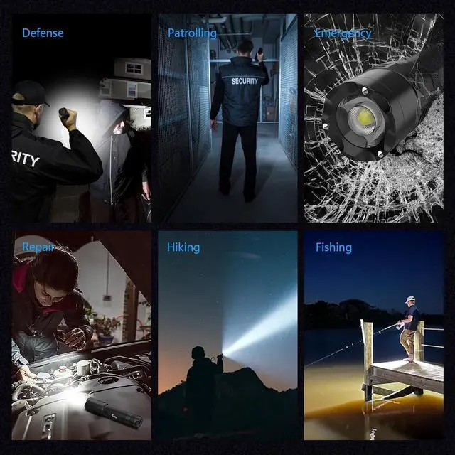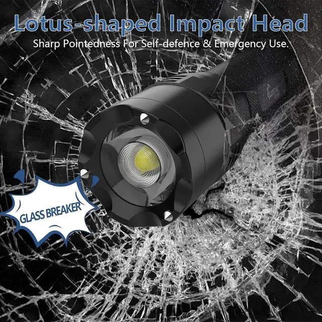 MULTI-FUNCTIONAL APPLICATION - Stainless steel strike head inlaid with three tungsten steel beads is indestructible, and the flashlight's extra taper is designed for striking and instantly breaks windows, providing window-breaking functionality for superb tactical protection.Lotus-shaped striking head provides sharpness, whether it is used for self-defense, emergency law enforcement, tactical operations or personal defense can instantly respond to meet the daily lighting needs, highlighting the strong performance.