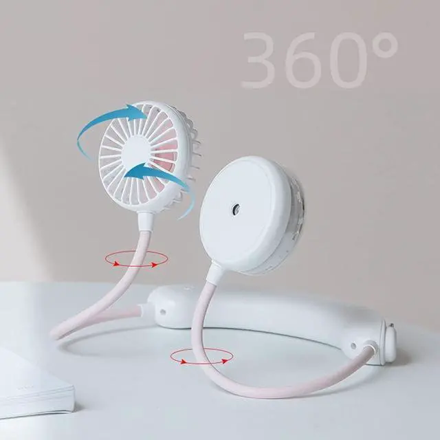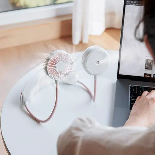 It is both a fan and a humidifier. Human body curve design, comfortable to wear, release hands. It can be rotated 360° and is easy to use. There are three wind power levels, you can choose at will. USB charging, easy to add water.