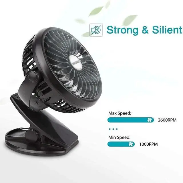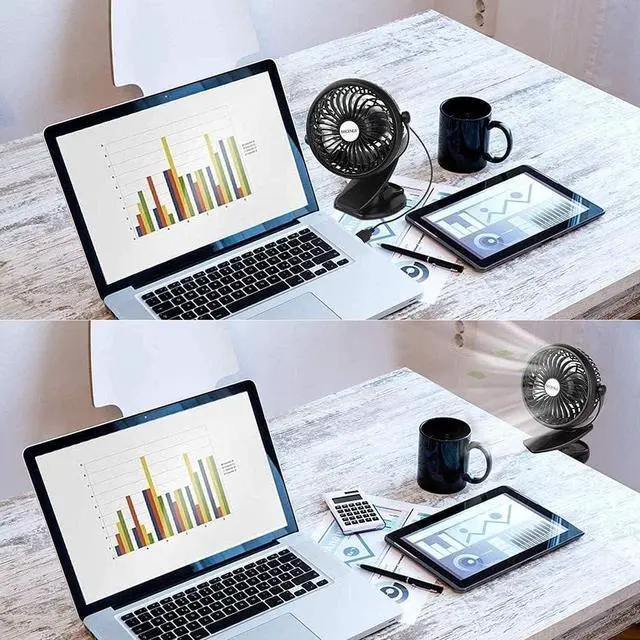 Material: high-quality ABS material, non-toxic and odorless, durable, anti-skid design at the bottom, stable support, shaft design, easy to adjust the wind direction, turbine mesh cover, increased wind power, sponge pad clip, no damage to the desktop, alloy fixture, suitable strength, no Will slip