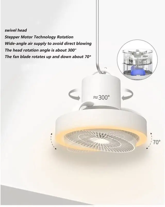 Free shaking head: stepper motor technology rotates wide-angle air supply to avoid direct blowing and shaking the head, the rotation angle is about 300°, and the fan blade rotates up and down about 70°